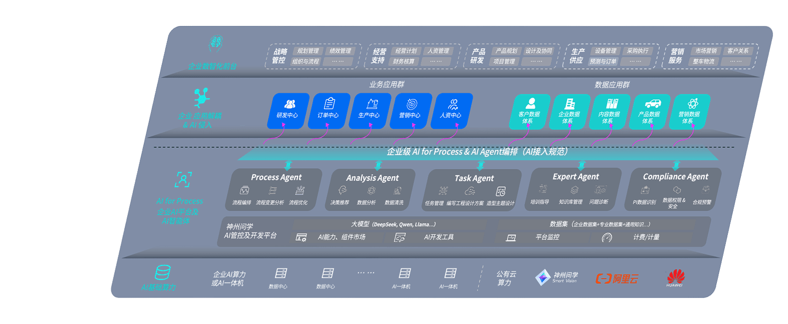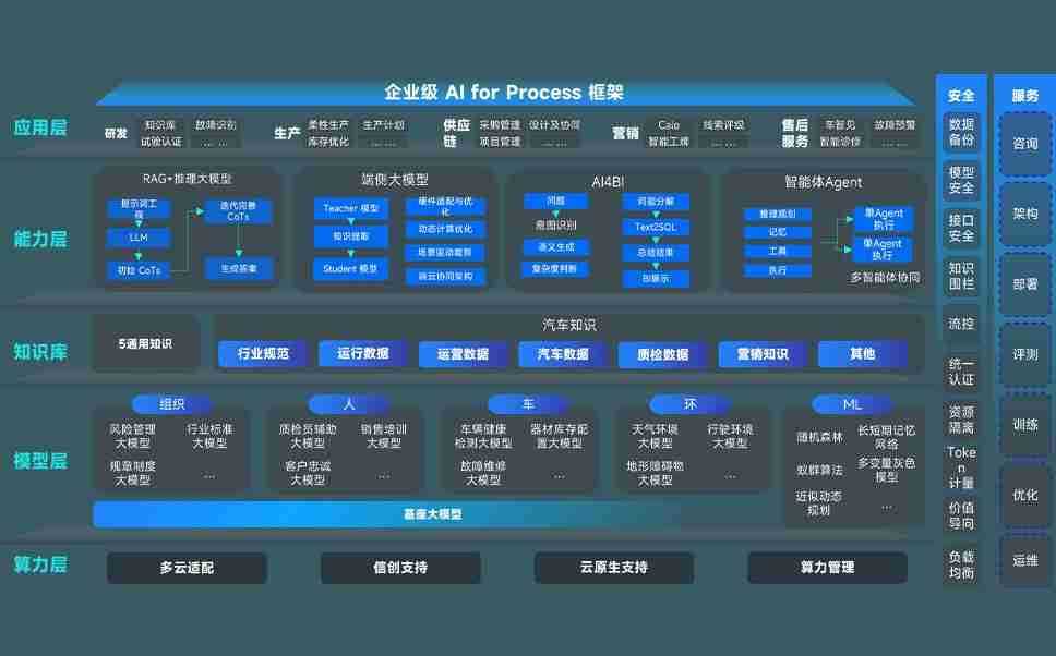 端到端的一站式AI工作空间深度融合了从企业战略规划到日常经营的全流程业务板块,,,,定向解决车企内部领域多、、、、部门多、、、、链条长、、、、场景碎片化等难题,,,,支持车企快速构建以AI为核心的生产力写作体系,,,,实现任务执行与AI能力的无缝集成与交互